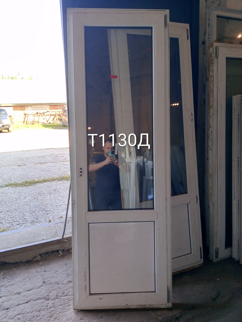 Пластиковая балконная дверь Б/У с однокамерным (2 стекла) стеклопакетом.