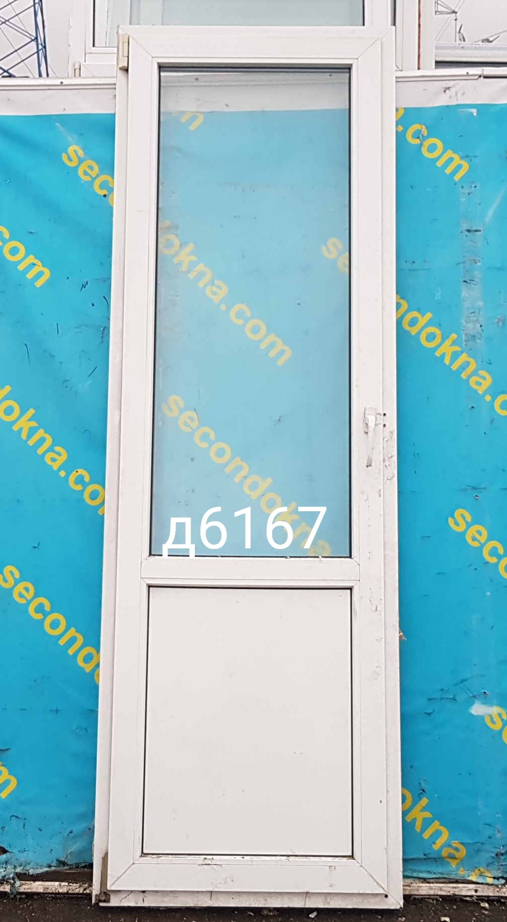Пластиковая балконная дверь Б/У с однокамерным (2 стекла) стеклопакетом.