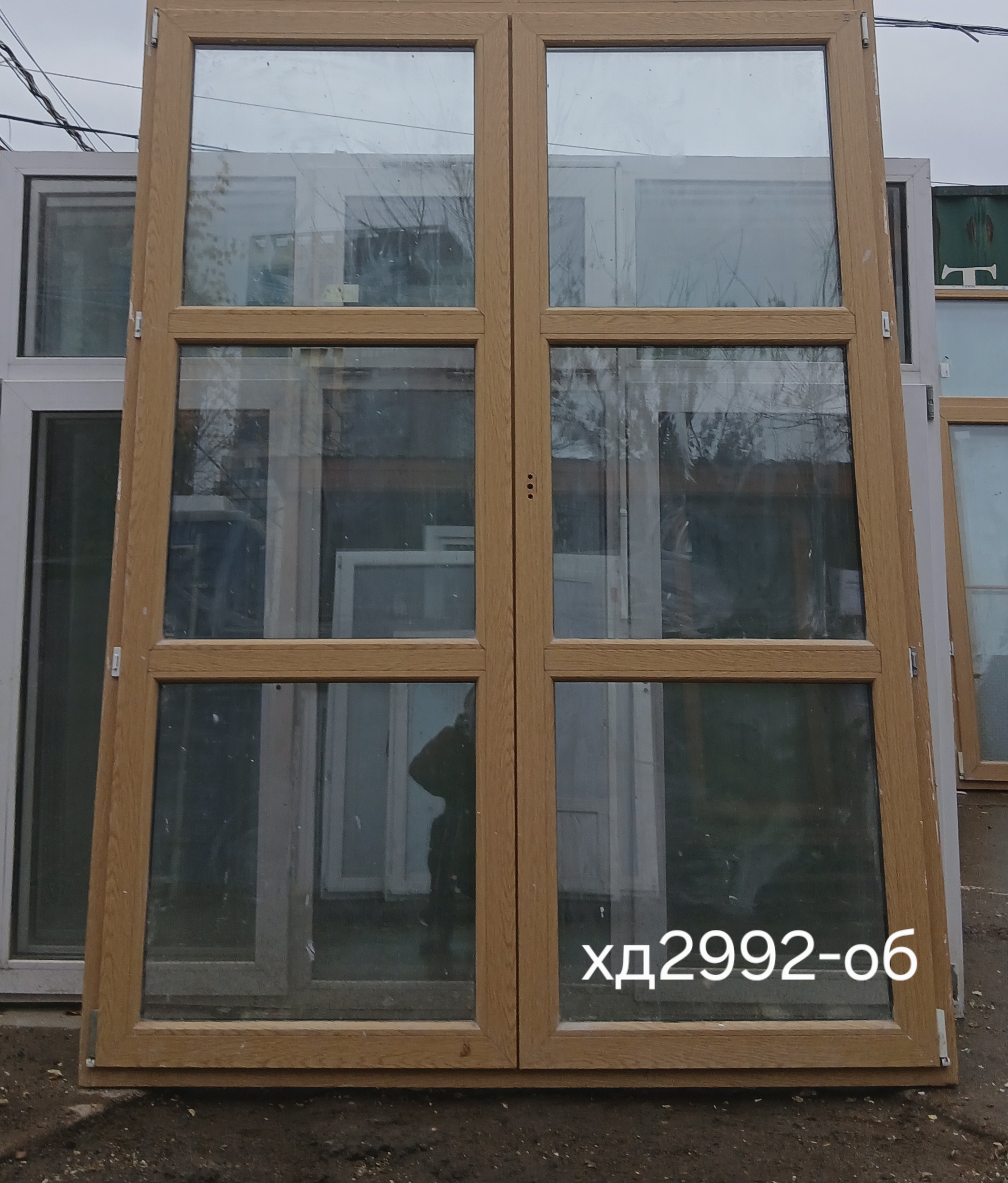 Правая створка поворотная (рабочая), ручка слева.
