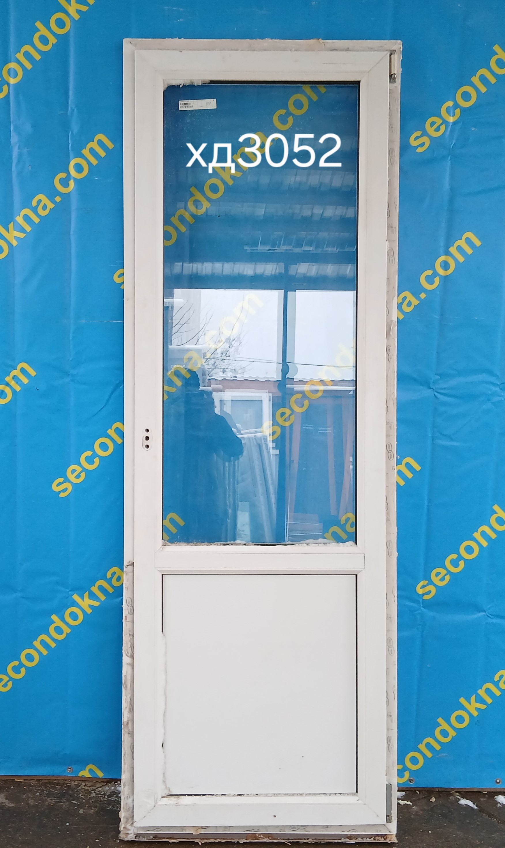 Пластиковая балконная дверь Б/У с однокамерным (2 стекла) стеклопакетом.