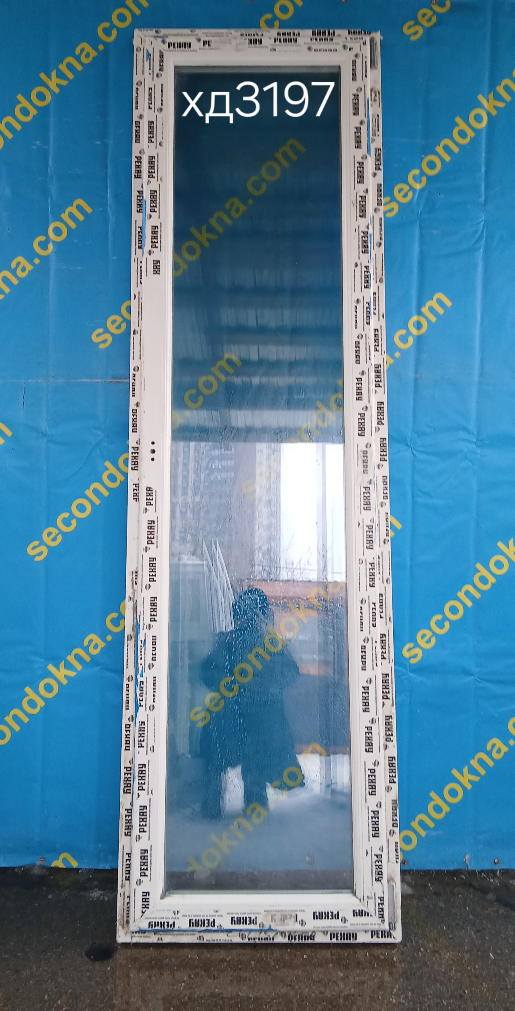 Пластиковая балконная дверь Б/У с двухкамерным (3 стекла) стеклопакетом.