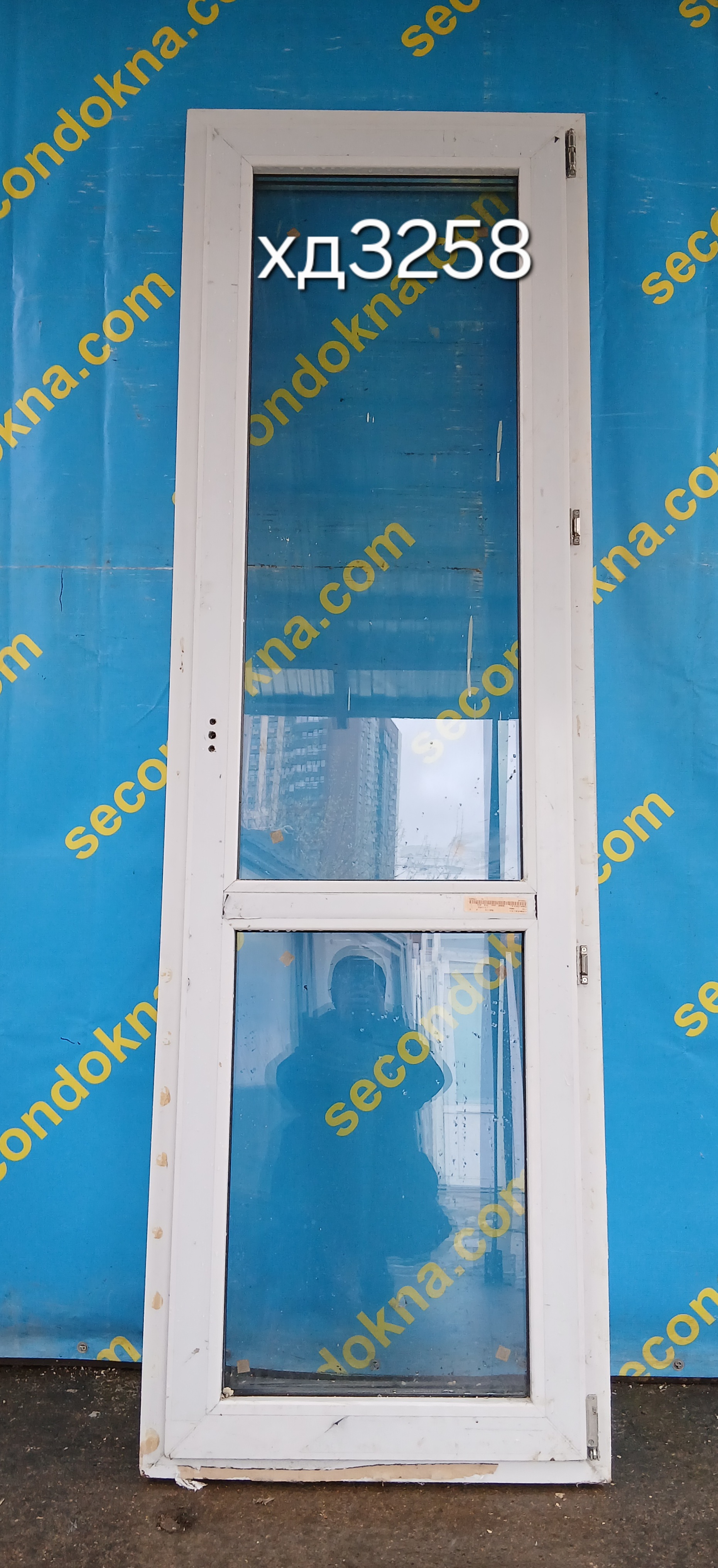 Пластиковая балконная дверь Б/У с однокамерным (2 стекла) стеклопакетом.