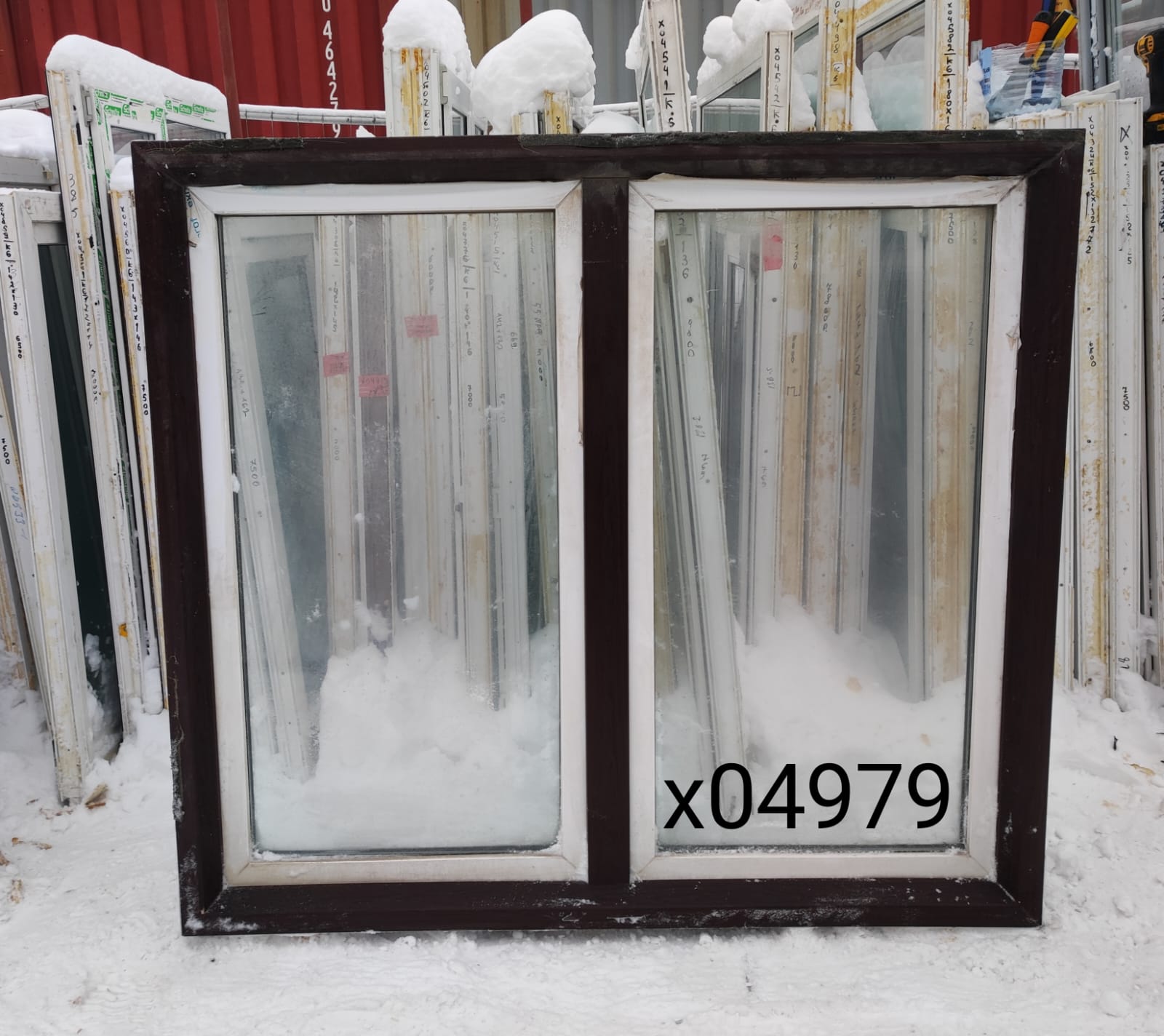 С фасадной стороны профиль коричневого цвета, рама створок белого цвета.