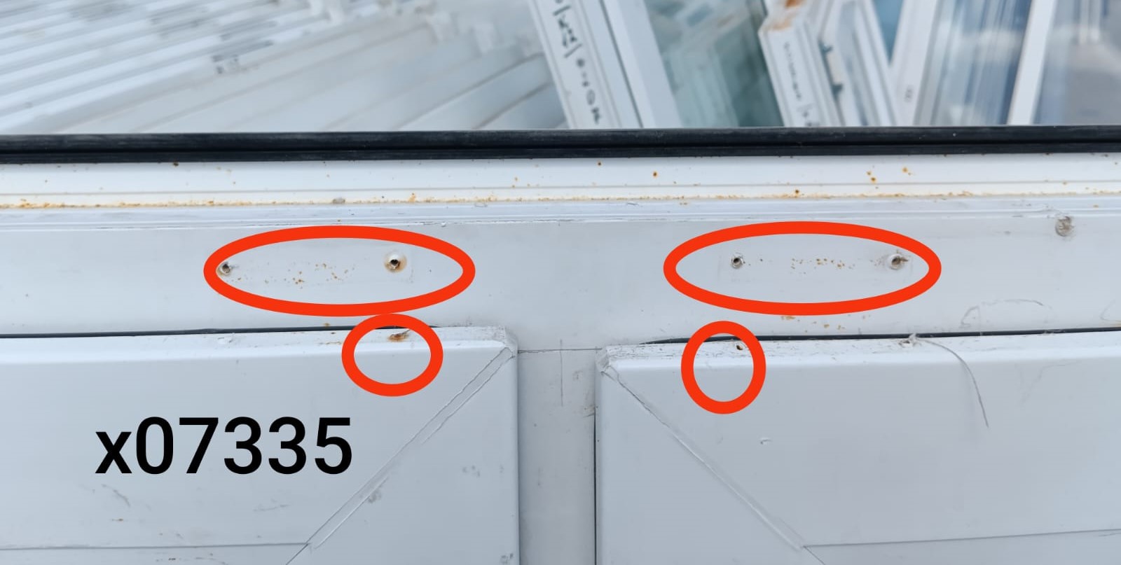 Следы от саморезов на раме (фото).