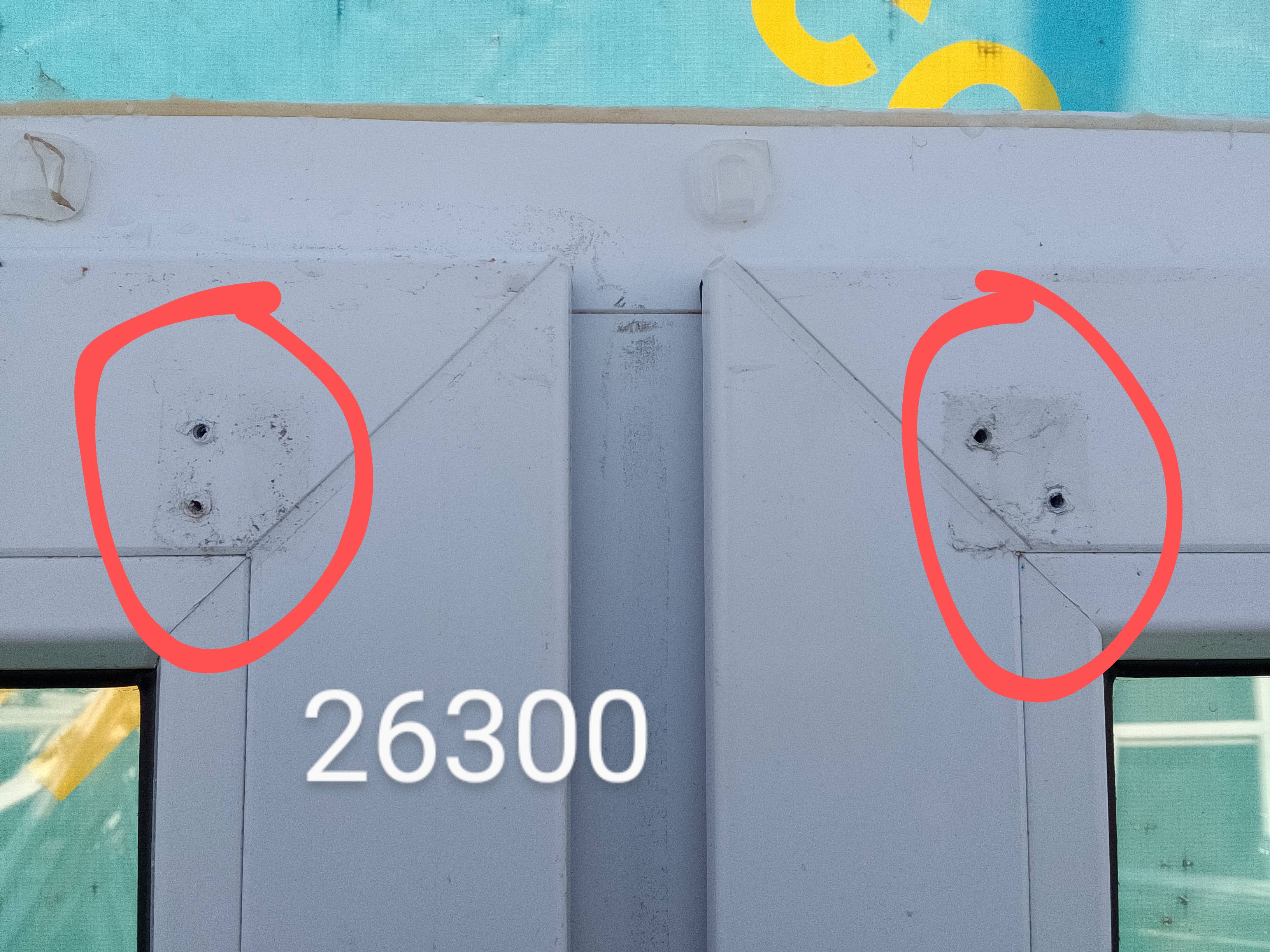 Следы от саморезов на раме (фото).