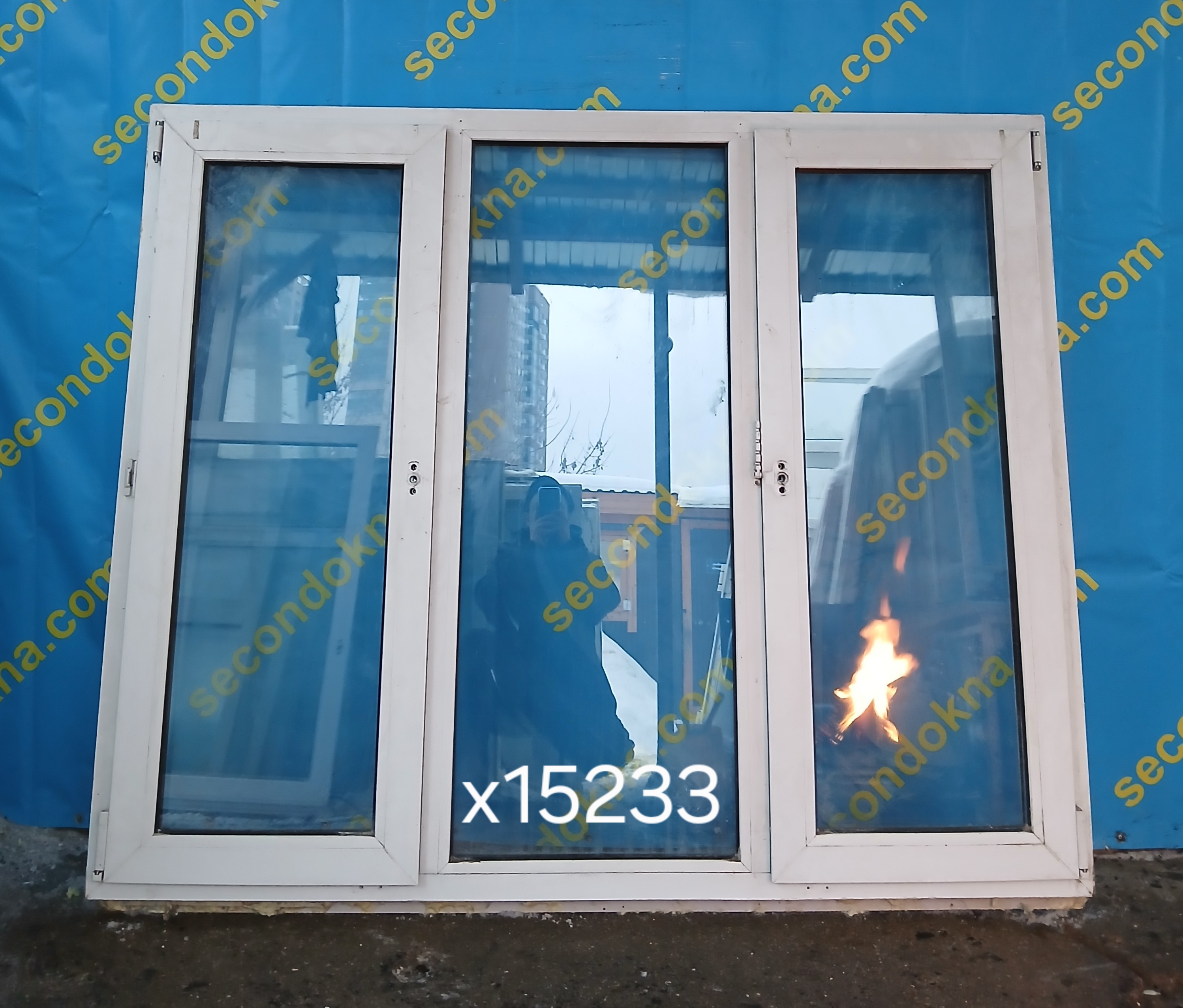 Пластиковое окно Б/У с двухкамерным (3 стекла) стеклопакетом.