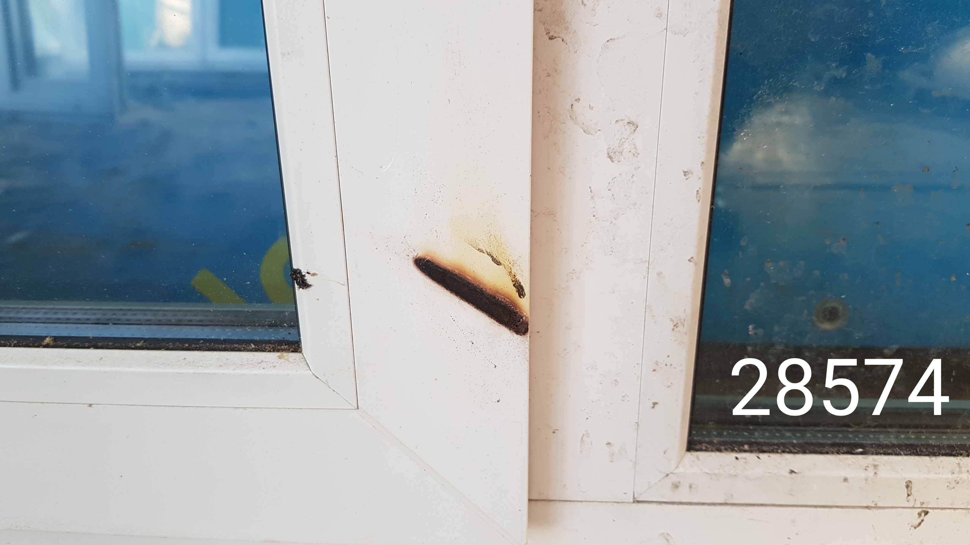 Термический "ожог" на раме створки (фото).